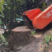 9 replaceable and bolt-on carbide steel teeth maintain their sharpness and rigidity even under the intense, 2500 RPM working load transmitted through the dual direct drive belts. This grinder has a 24" above ground and 10" below ground cutting depth capacity to knock out even the toughest root systems.