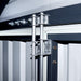 The TMG-MS2040 metal shed is compatible with the TMG-MS20-RD08 electric roll-up doors if you wish to upgrade the door option.