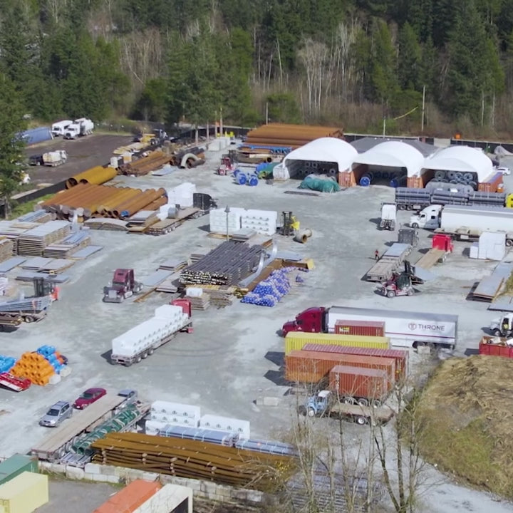 Made of strong, heavy-duty commercial grade polyvinyl chloride (PVC) fabric that is triple layered to prevent tearing and provide a long-lasting shelter covering for many years to come. This fabric is a natural flame retardant, commonly used in large commercial structures such as sports stadiums and event halls. The enclosed endwall and front drop provide an extra layer of protection for your machinery and weather sensitive cargo. Endwall is designed for standard 40’ GP containers; a 14" base will need to be added if using HC containers.